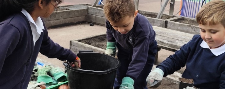 The club has been busy creating homemade compost, learning how to recycle natural materials to help enrich the soil. They have also planted a variety of vegetables, including garlic, radishes, carrots, and sweetcorn, as well as spring bulbs that we are excited to see bloom next term